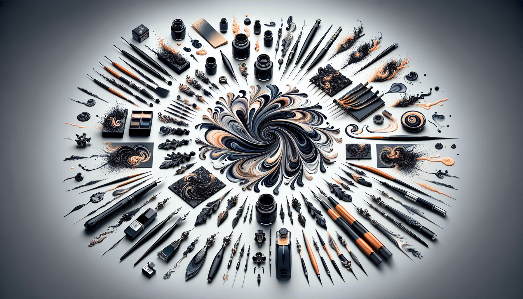 La qualité de l’encre et du papier influence la glisse et la régularité du tracé. Pour un lettrage fluide, une encre de bonne consistance, ni trop liquide ni trop épaisse, est préférable. Par exemple, l’encre Sumi noire traditionnelle convient parfaitement à la calligraphie japonaise tandis que pour la calligraphie latine, les encres pigmentées comme la Speedball ou la Higgins garantissent une belle intensité et une bonne tenue dans le temps.
